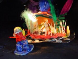 Hier wirst Du malen, forschen, bauen und lernst nebenbei die unterschiedlichen Welten des Theaters kennen. Es erwarten Dich spannende Experimente mit Licht. Du arbeitest mit Papier, Holz, Ton, Nägeln und Hammer und baust beispielsweise eine Zauberburg, Dinos auf dem Mars, ein Glitzerschloss oder einen Gespensterwald. Theater kann so viel Spaß machen.