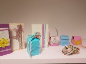 Nach dem Trocknen gestaltet ihr daraus wunderschöne Grußkarten für jede Gelegenheit. Doch damit nicht genug – mit Papier, Klebestift, Schere und eurer Fantasie könnt ihr noch viele andere Alltagsgegenstände basteln…